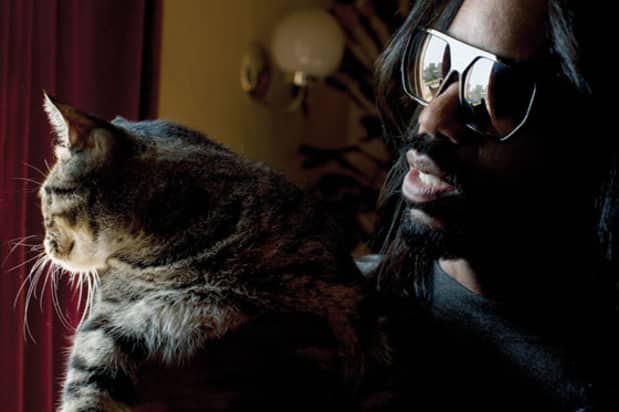It’s an eerily comfortable 90-plus degrees as we drive, but Dam expresses concern for the crates housing his life’s treasure and their ability to withstand the inevitable warping this kind of heat brings. Back in Leimert Park, packed into a one-car garage behind his house, is a colossal record collection spanning decades of his objectively soulful musical interests, dense with early ’80s funk and boogie. Also in the garage are turntables, recording equipment and vintage synthesizers, yet something is definitely missing. Three weeks ago, Dam tracked down and bought a vintage keytar, which he’s since mastered. Most recently cast as visual gag in Snoop Dogg’s retro-tourist “Sensual Seduction” video, the keytar is Dam’s latest joy. Later in the evening, during the rehearsal for Master Blazter, the band he’s recruited to blow out his entirely self-produced compositions, he fingers the instrument as he sings through a vocoder, effectively altering time and space. Behind pitch black sunglasses, under one red light bulb in the single-room practice space, he looks like he fell off the back of one of the album covers he has filed somewhere deep in his vault. Dam has become a god of funk.