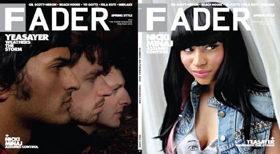 We've heard from a few people—more than a few actually—surprised at our choice of cover stars for FADER #66. This shock is not over the individual artists, but over their juxtaposition. This is what FADER has been about from day one, though. The people who have and always will make this magazine (and, we hope, the people who read it) embrace everything from everywhere, put it next to its unexpected neighbor and shrug their shoulders at seemingly glaring differences. This is not to say that hysterical and famous rapper Nicki Minaj is the same as burgeoning rock/synth maniacs Yeasayer, but that they share an electricity. And, at the tail end of winter, we were happy to be able to report on a plethora of phenomenal jam creators. Nicki Minaj is the hottest shit since sliced bread, emerged headstrong out of Lil Wayne's Young Money, with a fiendish desire for more cheese and a coronation as the alien queen of hip-hop. Yeasayer we've loved since their first album, which we not jokingly thought often sounded like Rusted Root. Odd Blood, their stunning, enormous sophomore release is much more than a step forward, it's like they went from baby steps to 360 slam dunks overnight. Both Yeasayer and Nicki Minaj have roots in New York, as does Gil Scott-Heron, who, after emerging from Riker's Island, has spent four years with XL label head Richard Russell making I'm New Here, his first album in a long time. It's a showstopper, and to celebrate his return, we went up to Harlem to speak with the legend. We think everyone else, from both covers on in, is a legend in the making—from Marina and the Diamonds to Joy Orbison. We suppose only time will tell, but time, as it is said, is on our side.