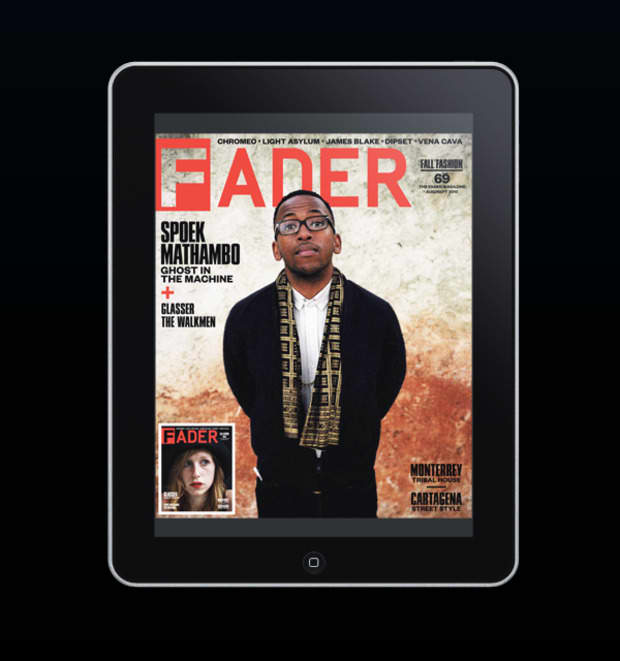 Holy double rainbow! Our Fall Fashion issue is a doozy. South African gun songs with Spoek Mathambo, New York bed and breakfast with Glasser, stylish Colombia, teenage Mexican raves, parenthood with The Walkmen. We can list forever, page by page, all we have crammed into one of our favorite issues of The FADER but we don't have to because you can see for yourself. Starting with this current issue, digital copies of The FADER on your computer or iPad will be for sale through Zinio, with a yearly subscription running you the bottom dollar amount of $16.99 aka 43% off the cover price. And for those of you who are just as in love with the audio podcasts that accompany every issue of The FADER, you can still find those over on iTunes. Check out Zinio for more details and enjoy the fall in style.