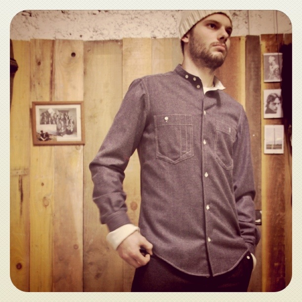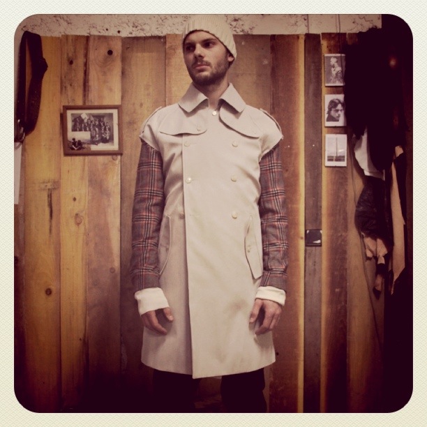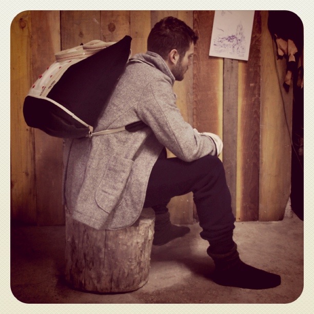 Taking cues from his impeccably styled grandfather, Olivier Borde went to the French Alps for inspiration for his fall/winter 2011 lookbook. The collection feels refined and well-tailored, and the styling a bit unexpexted— coats are layered and folded over, double-breasted wool coats are belted with bouquet in hand. Borde's tattooed models add the right dash of round-the-way dude to temper the woodsy refinement of the classic style.