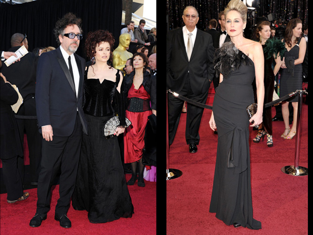 Hey, we're not trying to be mean. Plenty of Oscar bettys looked pretty last night, columns of Grecian gold and swept-up hair. But only four ladies looked cool, a very different thing. Their avant choices in attire made them seem even more glamorous, made it clear that they, and not the blondes in the safe off-the-shoulder gowns, were the true queens. The bevy of cute, frothy dresses that walked last night are the tulle equivalent of giving the three main awards of the night to a movie about a dead English king. Who cares? Cate Blanchett's weird but perfect Ricardo Tisci, Rachel Roy's color blocking, Helena Bonham Carter's costume drama, and Sharon Stone's bitchy glamor were the saving graces, fleeting indications that eccentricity and unsafe choices can still be the calling card of Hollywood, that the spirit of Bette Davis and Katherine Hepburn haven't been completely suffocated in a barrel of crinkled satin. Hollywood: we're yawning. Give awards to cooler people. Check out Stone and Bonham Carter after the jump.