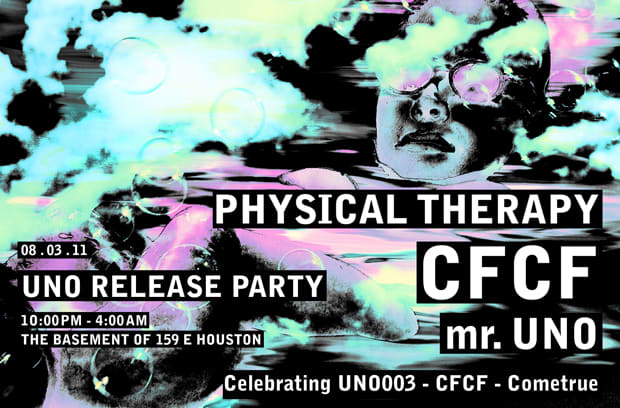 We're constantly looking for songs that fit into our vaguely defined, mostly unrealistic mental concept of "late night sitting around and sweating music." This could be anything, but most of the time it's not dance music. CFCF just changed all that with "Cometrue" and then Physical Therapy changed it even more with his remix of the track, which adds animal noises and basketball court shoe squeaks that sound like they're echoing off surrounding buildings. If sitting around and sweating while listening to these songs isn't your vibe, then you're in luck, because CFCF, along with Physical Therapy and Mr. Uno are celebrating the release of the record that features both these songs, tomorrow, August 3rd in the basement of 159 E Houston. You can move and sweat instead of just sitting there. Options! As an added bonus, sign up for the UNO Records newsletter at the site for a chance to win a record. Admission is free! See you there.