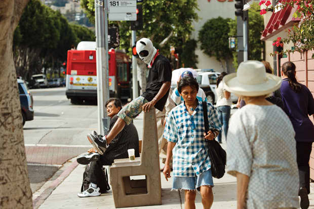 The next day, browsing for kitchen stools and a couch in a giant furniture warehouse on Venice Boulevard, Ocean seems distracted, giving some credence to his manager's account that he can be a difficult read. He's got an appointment in the afternoon and tickets to see Rihanna in the evening, before he travels tomorrow to Big Sur to film the video for Nostalgia, Ultra's standout "Swim Good." There's been a debate about whether the Town Car limousine he'll drive in the video should be orange or cantaloupe. (He chooses cantaloupe.) Then there's the matter of his custom-made costume, not to mention the fact that no one has figured out how he's getting 250 miles north less than 24 hours from now. But he tries to see the bright side. "All this shit lately is kind of therapeutic. Being an artist is not just the music. That's the nucleus of everything, that's the shit that everything's revolving around, and why everything's revolving to begin with, you know and spinning and shit." Then he trails off. "And it's cool to do all of it, you know, videos, photography, putting together artwork, blah blah blah." Later, he asks if he gives a good interview. Wandering, his mind mostly elsewhere, Ocean doesn't find anything he likes furniture-wise, and leaves empty-handed. In the parking lot, I ask him why he doesn't have a Mercedes E3 M30, the vintage car pictured on the cover of Nostalgia, Ultra. He says it's impractical for driving around in the LA grind. He wouldn't want to waste such a nice car on a workaday lifestyle. Before he heads off, he launches into an educational talk about why it's better to buy a used car in California than the rest of the country, where the humidity and precipitation exponentially increase the chance of rust. In California, he says, it never rains. Then he gets in his car, which is easily recognizable as the silver Benz from the Chris Brown chase video and, for the second time in two days, heads to the dentist.