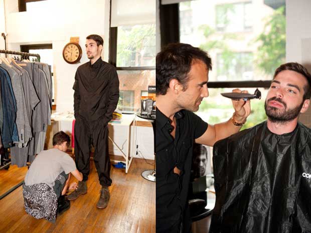 Duckie Brown and ConAir held a preview of their upcoming September show in an old loft in the West Village. We popped in to check out the clothes, which were drapey, fresh and inspired by the tracksuit silhouette that designer Steven Cox had been seeing a lot of in his hometown.