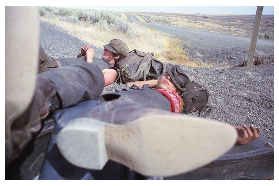 Despite growing up by train tracks and catching the occasional flash of slumped riders passing by out his kitchen window, Brodie got his first real look at hobo culture on a blind date with a punk girl who worked at a Chinese restaurant in town. “The date was we were gonna go to a This Bike is a Pipe Bomb show at the End of the Line Cafe, and she was punk with her dyed black hair, and there were these smelly young people dancing around barefoot and I thought, This is so cool! It’s ridiculous, but I don’t know where I’d be without the punk scene.” After that date, Brodie, fascinated, spent all his time studying this weird niche of society from the inside. He heard about train riding soon after and went off to do it.