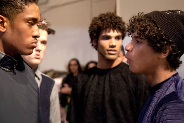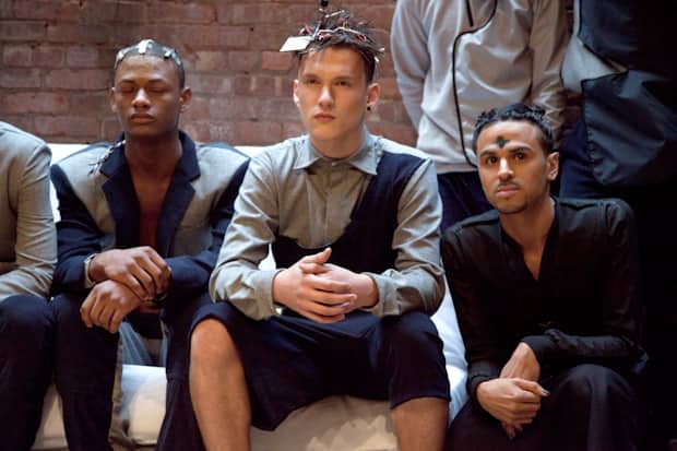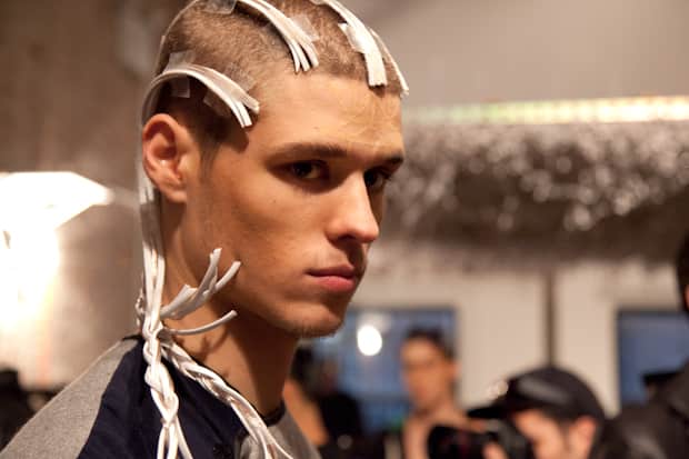Picking up on some of the apocalyptic bodings that pretty much all of us are feeling these days, Momofuku restaurant's magazine Lucky Peach recently put out an issue dedicated to the fall of civilization, giving you tips on where to forage for honey even after nuclear fallout and how to ferment food so that it never spoils if you don't have refrigeration. Scary stuff, but perhaps practical and right on the money. Lately, a few designers have been needling these issues as well. On Sunday, Hood By Air had a zombie wandering the runway with strobe lights for teeth and Eckhaus Latta showed a collection of loosely sewed chunks of synthetic fabric that looked like the kind of clothes that future refugees could hobble together from all the 21st-century artificial materials that never decomposed. Just yesterday, Luar Zepol did a take on cybernetics with models sporting wires taped into their hair and shirts that looked like Frankenstein mash-ups of heat-retaining polar fleece and more traditional cottons. The future might not be bright, but at least it's stylish.