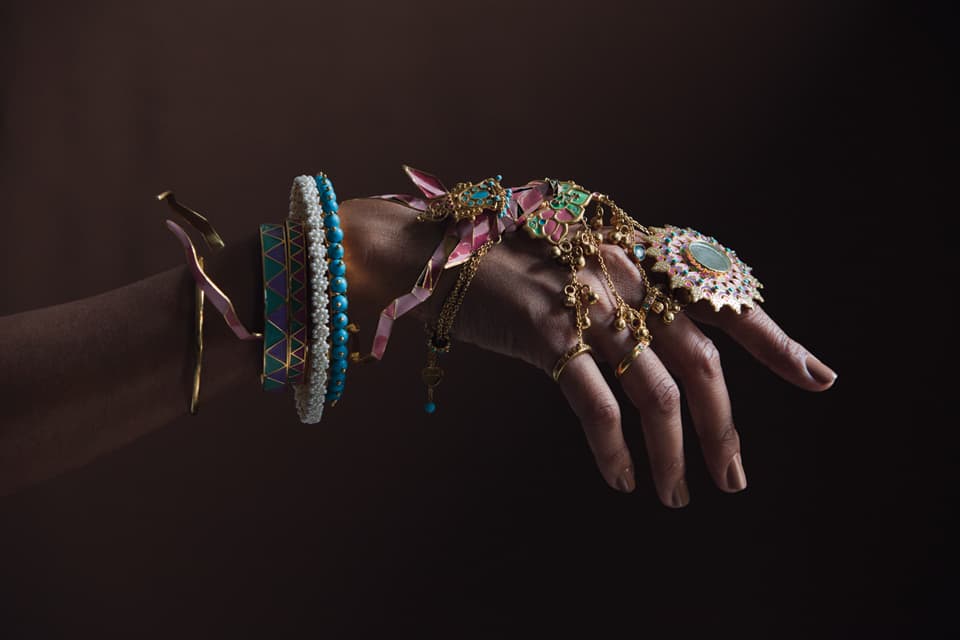 New Delhi designer Manish Arora wanted his collaboration with Jaipur jewelry company Amrapali to champion the age-old customs of his native India, but he also wanted it to speak to the myriad ways modern women mix and match their accessories. “Jewelry is one of the most important parts of Indian culture, but it’s not really jewelry in the fashion sense—it’s personal,” Arora says. “It can completely change your look and outlook.” Famous for the dramatic, fantastical collections he shows every season in Paris, Arora pushes Amrapali’s traditional silhouettes to a much campier place by making iconic Indian shapes louder. Take, for example, Manish’s colorful twist on a symmetrically perfect circular bracelet that’s typically worn for weddings. “The Queen of Hearts bracelet is an Indian design called bangri, and this is a very ethnic piece, but now Manish has completely changed it,” explains Amrapali’s CEO Tarang Arora (the two are not related). “By adding the little hearts of cubic zirconia, and the different colors, we’ve taken it and made it more international, cooler.” Other pieces are even brasher. One bracelet wraps up the wrist like a snake, and a pair of tiger-headed ear cuffs sit outlandishly on top of the lobe. Meenakari, the Indian art of applying enamel to metal, is used for cheeky pastel colors, and the bright gold throughout the collection screams J.Lo as much as it does its more customary Indian symbolism for the sun. “It’s all shiny gold, very much all about bling,” says Tarang. Like the oversized rings that reach out across three fingers with Indian splendor, Arora has managed to go big and go home at the very same time.