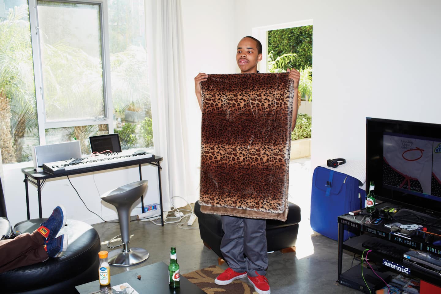 Earl Sweatshirt’s apartment is a nightmare—four laundry baskets, seven video game controllers, Budweiser empties, potato chip shrapnel, blunt guts, skateboards and dust bunny warrens galore. There’s a paper towel magneted to the fridge that says “Fuck You!” scrawled in Sharpie. The walls may be marked with dingy fingerprints, but Earl’s starter apartment is one of a specific mien; he lives in the same complex Bay Area YouTube rapper Kreayshawn moved to when she signed her purported $1 million deal with Sony. Last year, Earl signed his own papers with Sony, securing an imprint called Tan Cressida with distribution through Columbia. He likes the digs but loves the complimentary Flavia coffee machine in the leasing office. “I’m hyped on it,” he says. “I drink that shit every day.”