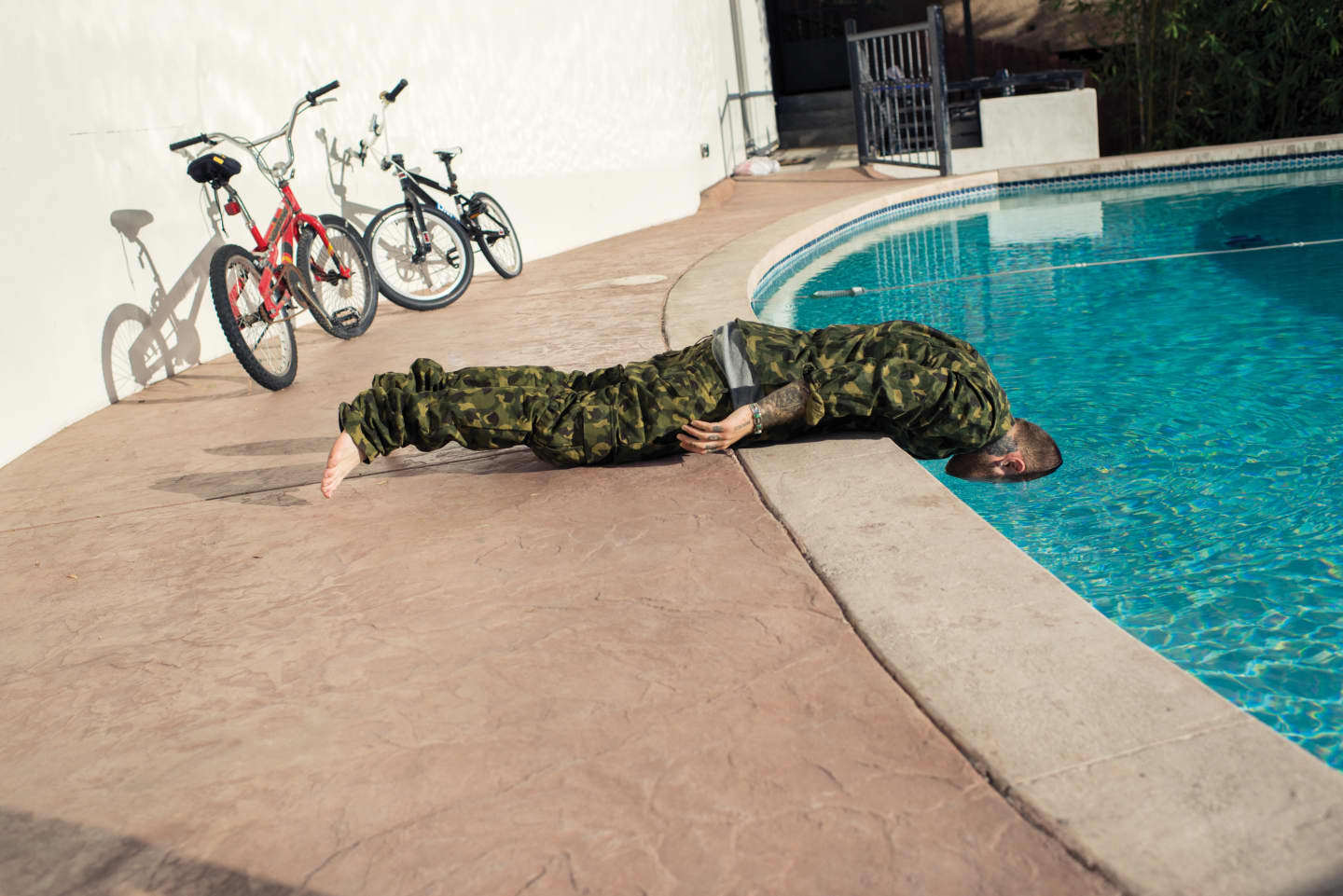 It’s early in the afternoon, but Mac and a half dozen of his closest homies are chilling in the mansion he now calls home as if it were still morning. It’s one of those mansionesque mansions, complete with an infinity pool and a breakneck wind of road that Mac calls “the worst driveway in hip-hop,” listing off the many rap star pals of his who have struggled backing out of it. Once you clear it, the poolside kiddie basketball hoop and scattered sprawl of bikes reveals the Blank Check fantasy of the situation.