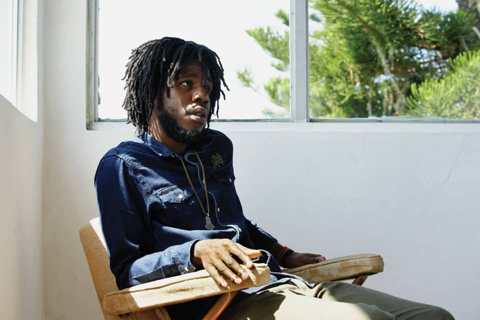 Following a busy summer that saw him play his first overseas dates, Chronixx is wrapping up work on a second EP, Dread and Terrible, ahead of an as-yet unnamed LP. Describing these projects, the singer can’t help but paint with wide, historical brushstrokes. “What the ancient men used to experience, what Peter Tosh and Bob Marley and Jacob Miller used to experience, is a lot different from what we’re experiencing now,” he says of Jamaican life today. “A lot of things that used to happen are now five times as bad. And it would be worse if it wasn’t for them man who came before. So I’m just outlining the experiences of a Rasta youth like myself living in our times.”