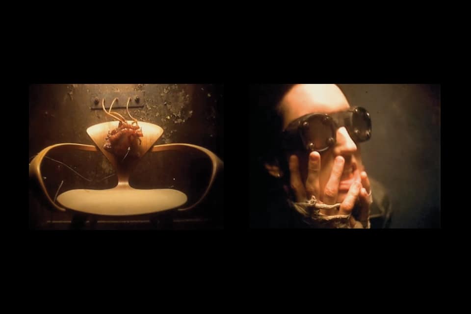 From the title card’s well-set type—a timeless, Germanic Futura—to the smattering of subverted midcentury American furniture throughout, “Closer” is full of high-end design. The bent-wood Cherner chair (1958; also the subject of a famous, 1961 Norman Rockwell Saturday Evening Post painting) serves here as a canvas for a pneumatic heart that pumps in time with the boom-bap of the song’s intro. Mixed in among meat hooks, cockroaches and ball gags, other haute bourgeois props include a Panasonic Orbitel television (1970) and a Warren Platner chair for Knoll (1966). In their time, these were Playboy-ready quotations of European modernism—nods to Danish, German, Italian and Swiss design. But in the context of Reznor and director Mark Romanek’s steampunk dream, they jumble to provide a template, of sorts, for years of NIN visuals to come: nostalgia for multiple eras while speculating future decay.