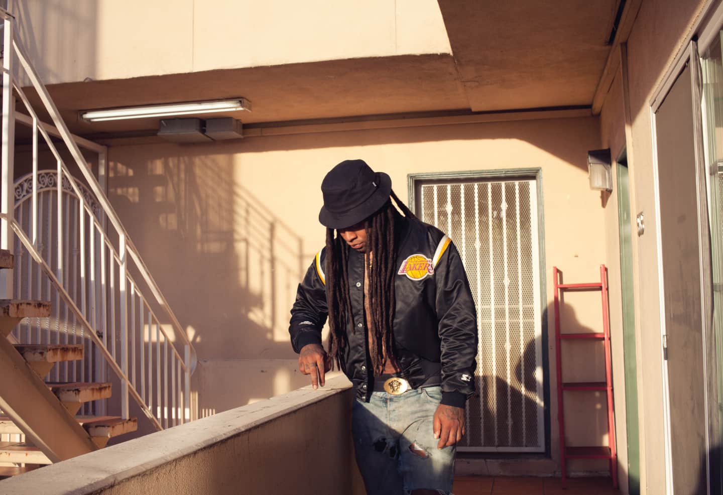 The Los Angeles sun hangs low, ringed in a halo of smog that casts a surreal glow across the skyline. Ty, who once woozily sang, How many girls can I fit in my cabana?, keeps an actual cabana on the deck of his hilltop apartment in Hollywood, the wicker chairs beneath it positioned so that his coterie may enjoy a sweeping view of the iconic Hollywood sign, nestled promisingly nearby. It’s three days before the start of the Beach House Tour, and the hours tick by in a gelatinous haze. Since noon, Ty has been smoking finger-length joints of the medical marijuana he stores in a mega-sized mason jar on his kitchen island. His catlike, olive eyes look clearer with the herb. Nate 3D, his friend and production partner, is sprawled out on a chaise lounge on the deck. Indoors, Ty’s refrigerator is papered with art made by his beloved nine-year-old daughter, Jailynn, including a marker-scrawled image certifying him as “the best dad in the world and universe.” Ty says he brings women back to his black leather couch; they aren’t really allowed in his bedroom.