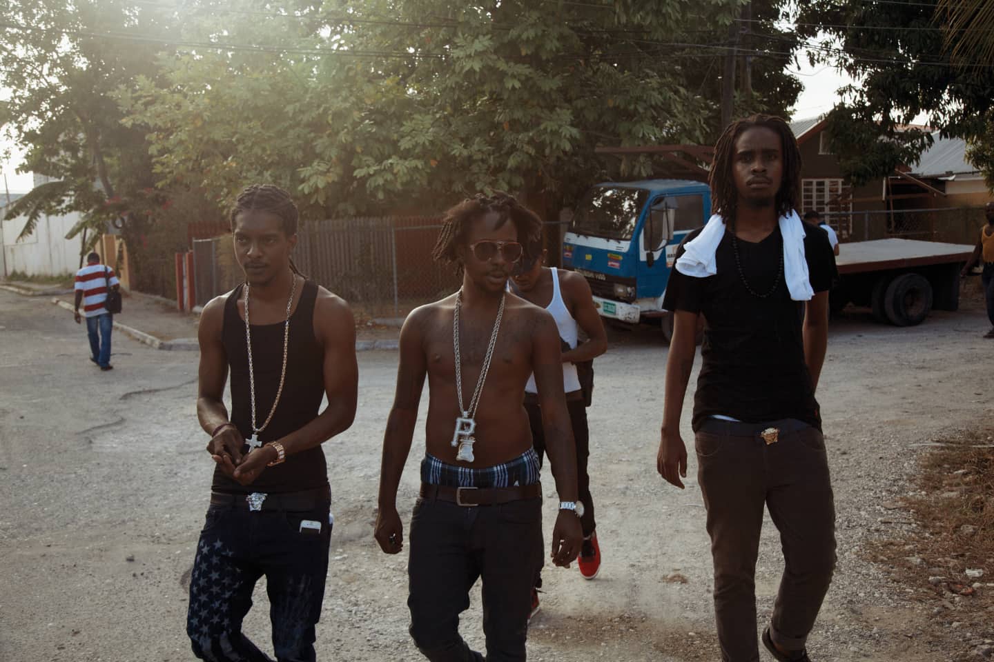 When he was 14, Popcaan went to live in Portmore, the longtime residence of his mother; upon leaving high school at 18, he considered becoming a soldier in the Jamaica Defense Force. While living in Three West, a public housing project referred to locally as “Gangster City,” his close friend Andre, known as Bamma, was murdered, an event he says led him to focus on music. Scumpy, another Portmore friend, gave him the nickname Popcaan on account of his light-up play on the soccer field. Once Scumpy also lost his life to violence, the name stuck.
