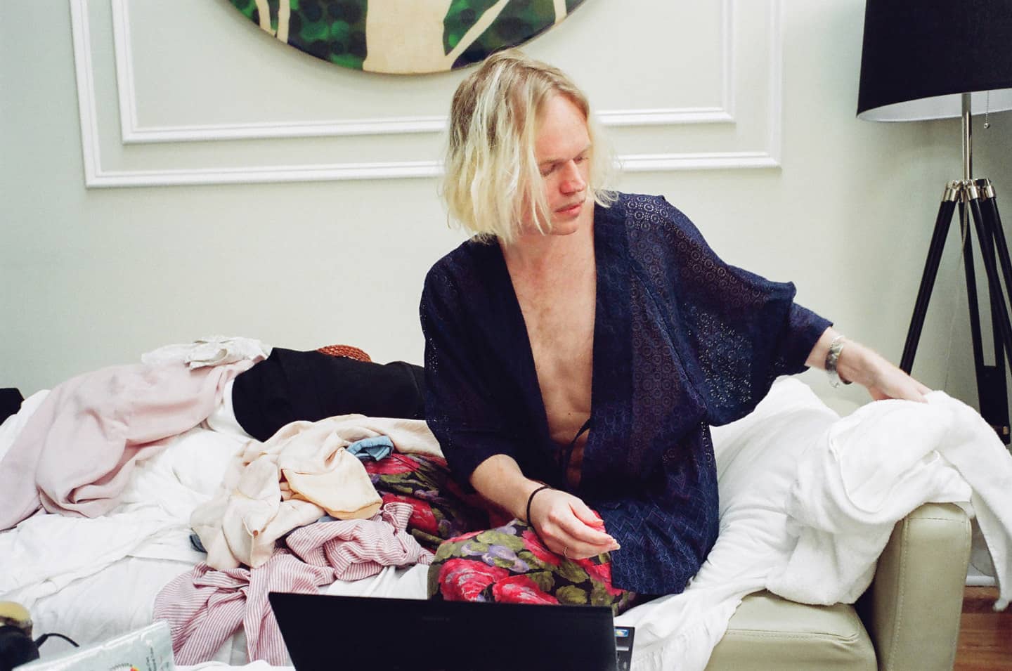 Ever since he showed up to play The FADER FORT Presented by Converse in Austin, Texas this year wearing a white kimono and oversized straw hat, we’ve been noticing New Zealand’s Connan Mockasin rocking looks that are as beguilingly strange as his sexual healing-driven psych-pop. He’s the rare, self-styled ladies’ man who almost exclusively wears women’s clothes (“They fit me better,” he says), with a wardrobe largely comprised of borrowed, thrifted and discount store items. We got together with the recent Brooklyn transplant to find out what he’ll be throwing in his suitcase when he goes on tour this summer, and how to look cool without spending, or thinking, too much.