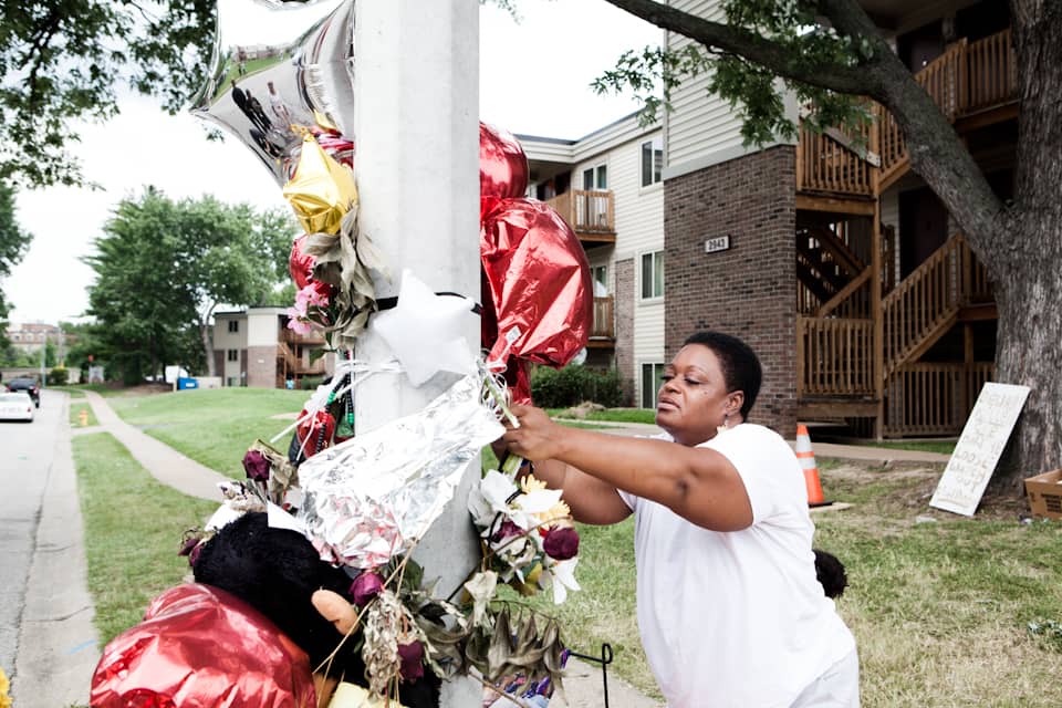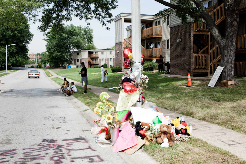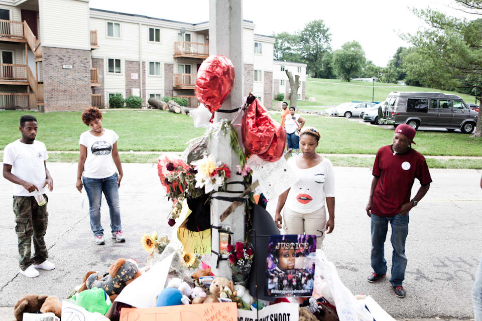 • The memorial for Michael Brown where he was shot and killed by police on Canfield Street in Ferguson.