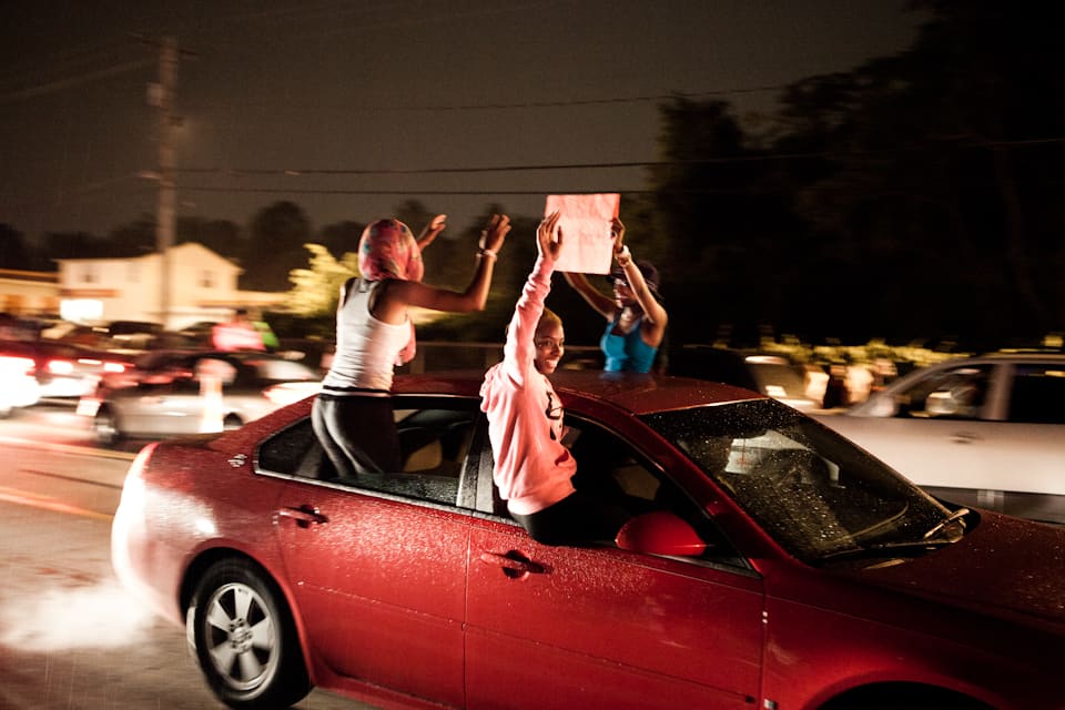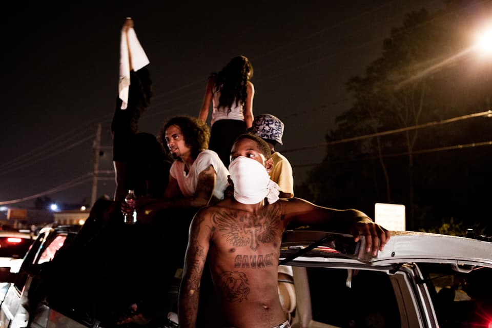 ALEX WELSH: I got to Ferguson last Thursday, the peaceful night. There wasn’t a heavy police presence. People were partying, just driving their cars up and down streets, kind of like a sideshow. But people were definitely angry, though it was also a jovial atmosphere and unity. People from the neighborhood were telling me that youth and rival gangs were coming together with no beef, with no problem.