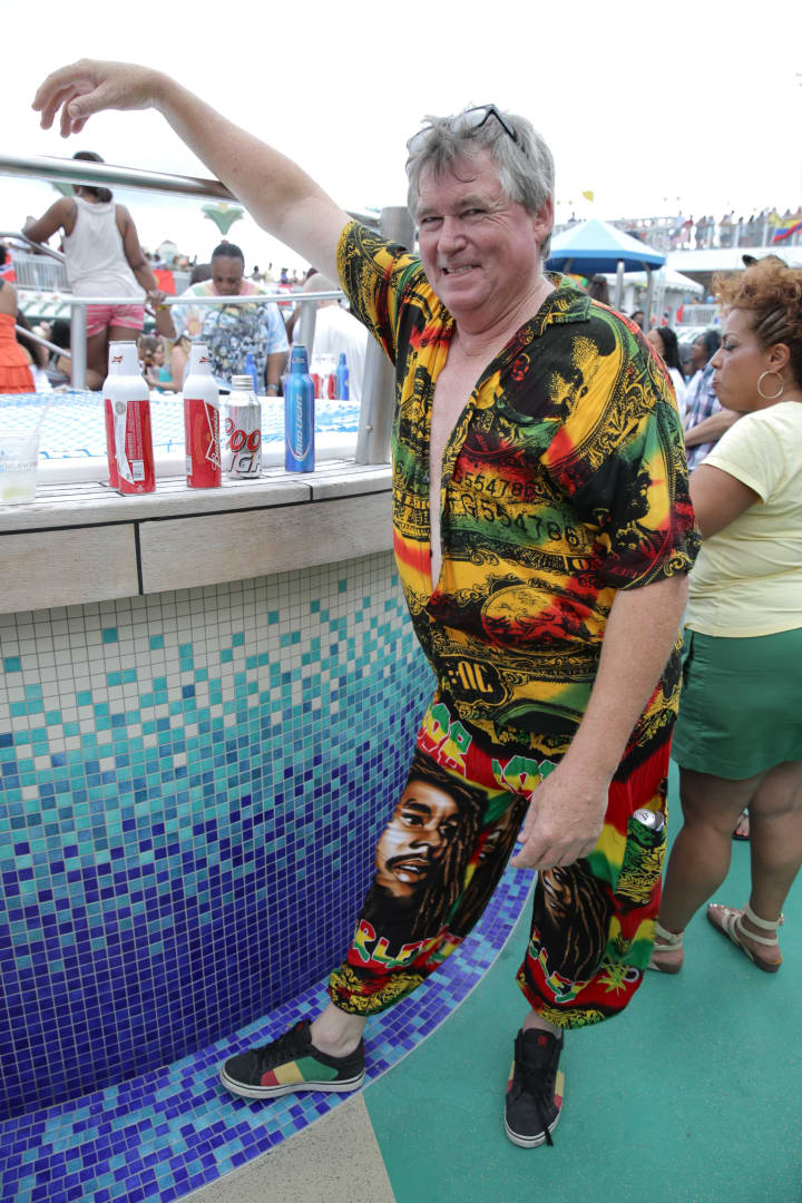 We're still sporting a serious tan since landing back from Damian Marley's inaugural Welcome To JamRock reggae cruise, which is an envious accessory in the increasingly colder days of fall. But before we plunge into the big chill, we can't help but recall the punchy island-ready style that reigned on board. We hit the main deck of the massive cruise liner to capture the best, brightest, and most irie looks during the five-day reggae extravaganza. Loads of red, gold and green, a serious serving of tie dye, and pot leaf prints ensued. Check out our fave folks below.