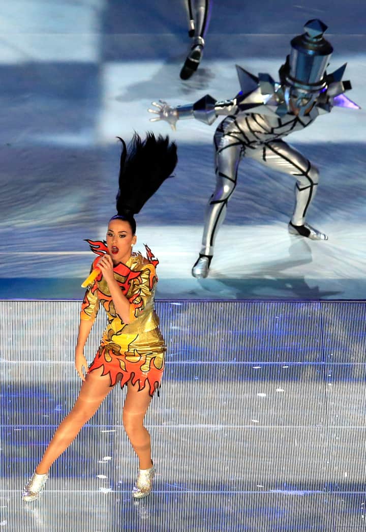 Katy opened the show in a flaming mini-dress for "Roar" and "Dark Horse."