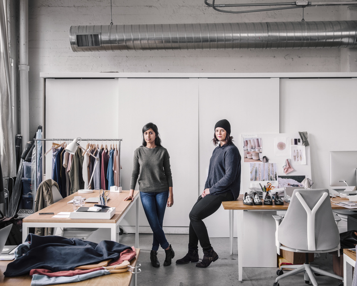 Langerova says she is "personally 100 percent drawn" to the more androgynous silhouettes that she's been articulating through Everlane's women's items, and explains the direction as a matter of growing workplace equality. "I think our woman has a land of opportunity in front of her," she says. "She is an equal partner in this world, and I think it's very important that she feels that she doesn't need to be perceived in certain ways." Head of creative Alex Spunt, who came on board at Everlane to helm the company's brand identity after working for five years as American Apparel's content director, echoed the sentiment. "I just think women look best when they look comfortable and relaxed, so I'm loving that this is the moment right now," she says. "We have busy lives, and I think modern women don't want to be thinking about squeezing themselves into high heels when they have so much going on."