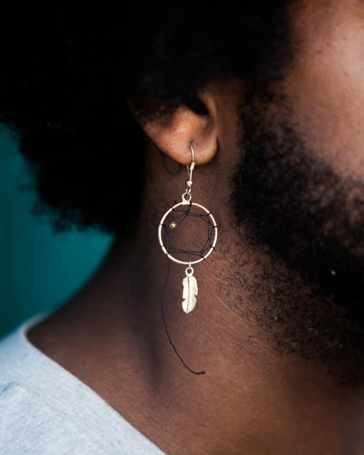 "One of my friends got this earring on a trip to South Africa and gave it to me. But it caught too many dreams and broke. I used to have a gold earring that my friend had made from her grandmother's ring. It fell out all the time and I finally lost it. I used to hate when that happened but, then I realized I lose shit so often. It's all so immaterial—but I'll still look for it. I lost a huge rabbit ring at my friend's house in Los Angeles and I know it's there, so every time I go I literally flip the whole crib upside down looking for that one ring."