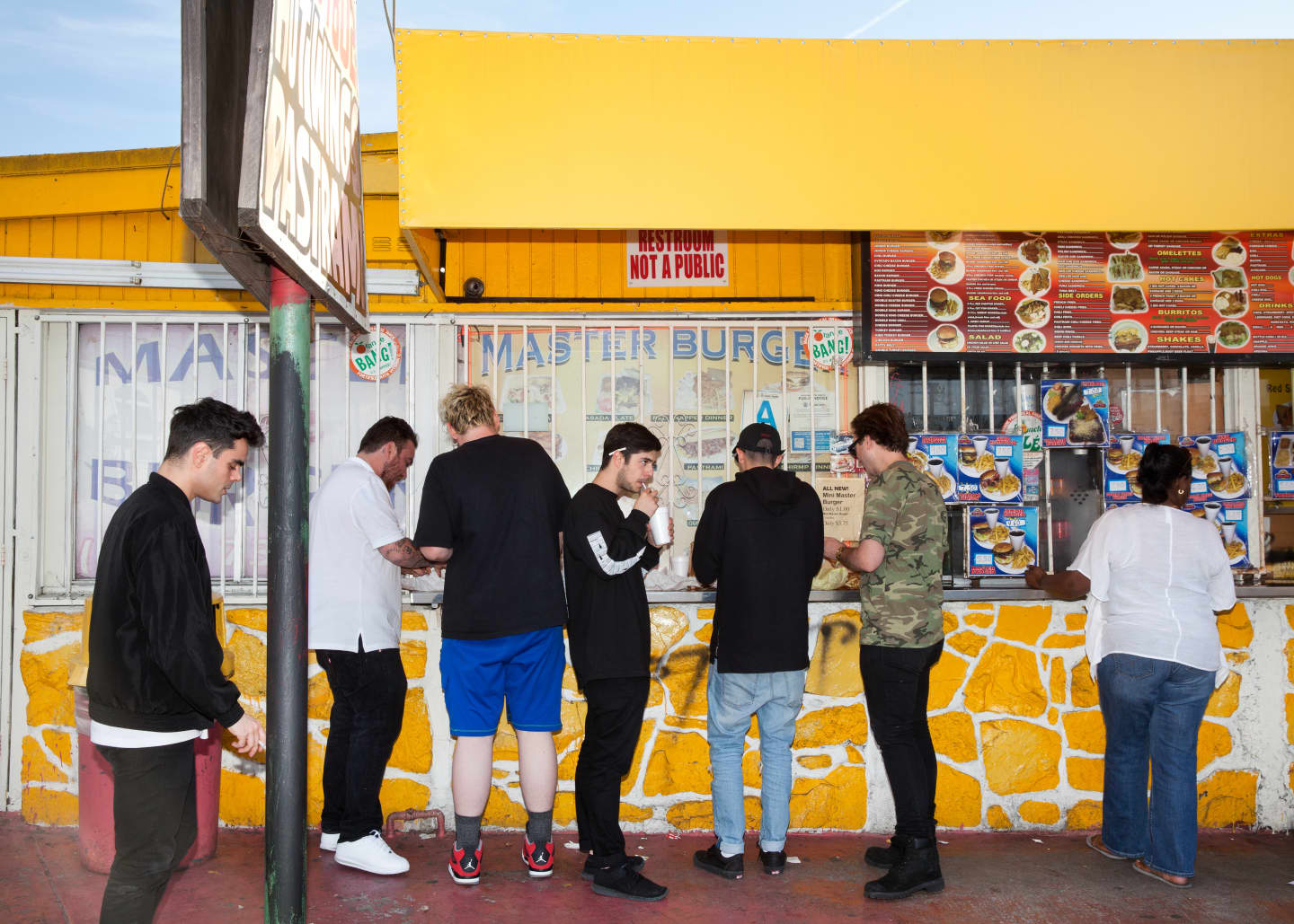 "I think I'm into the shitty things," Laufer will tell me later. We're wrapping up our final interview in the back seat of a car, on the way back to West Hollywood. Gazing out the window as houses and strip malls and gas stations fly by, he's telling me about his fondness for the sort of badly designed store awnings and food menus you can still spot pretty much everywhere you look in the city, its manicured reputation aside. "Things that regs like tend to be highly mediocre and inoffensive, no which way either here nor there. I just imagine how yoga studios look, you know? Papyrus font or something? That pisses me off. I'd hate to live in a place where everything looked like Beverly Hills or something. I'd hate to live in a place where everything is kind of flat, mediocre, and nice."