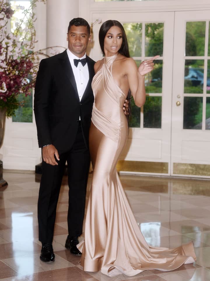 She showed up with Russell Wilson, a quarterback for the Seattle Seahawks. Instead of asking relevant questions, like, "Do you think Akie Abe asked Ciara for suggestions on a good bronzing moisturizer?" or "Do you think Michelle Obama is stoked about the release of Jackie?" the internet instead chose to freak out about the nature of her and Wilson's relationship. Ciara and Wilson posed like prom king and queen and generally looked pretty chummy. You can even spy them holding hands in one photo, if you look close enough (not telling which!)