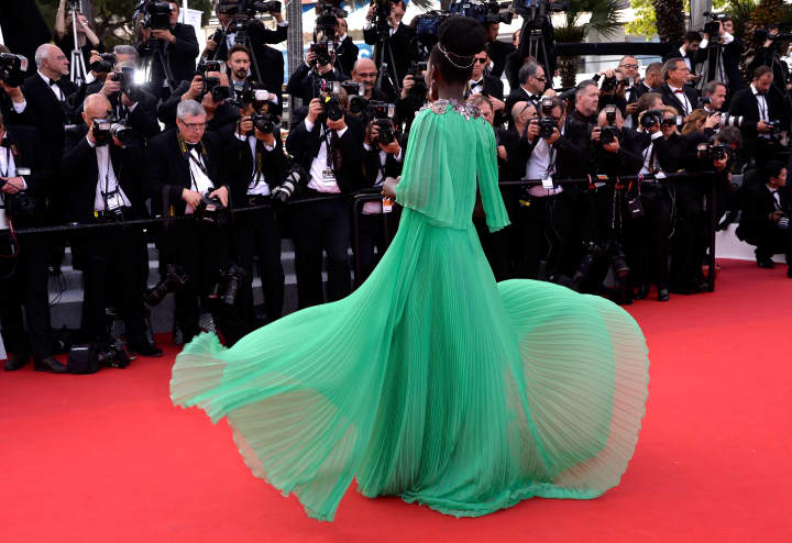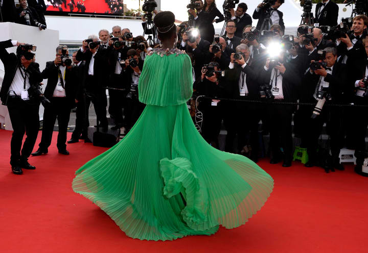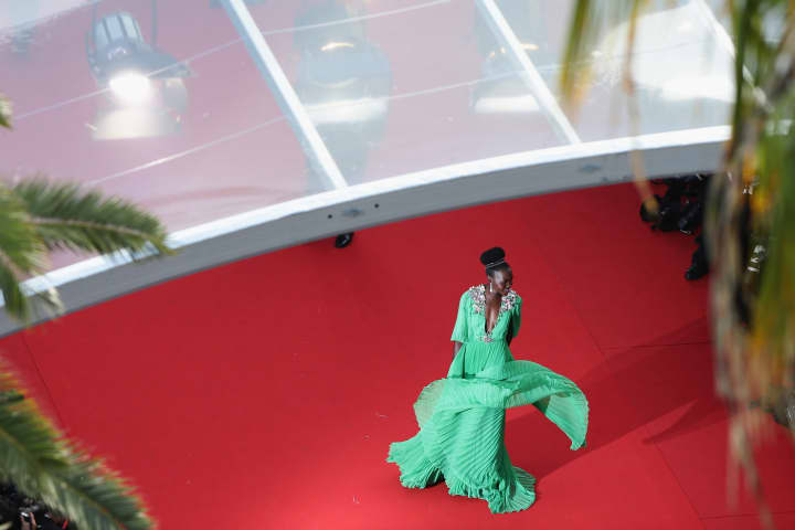 The last time we saw Lupita in green she was wading in questionable waters at last year's Met Gala, in an unfortunate Earth Day flapper ensemble. Walking onto the red carpet at Cannes last night in a mintier green hue, the actress redeemed herself—ten times over. Her Gucci dress was a literal breath of fresh air: it fluttered and folded as she walked, clinging and flowing in precisely the right spots, setting off her violet lipstick and heavy teardrop earrings. She looked like some kind of exotic bird that had landed by chance on the red carpet, and every photographer there appears to have realized the beatiful moment they'd been blessed with. Lupita from every angle, below.