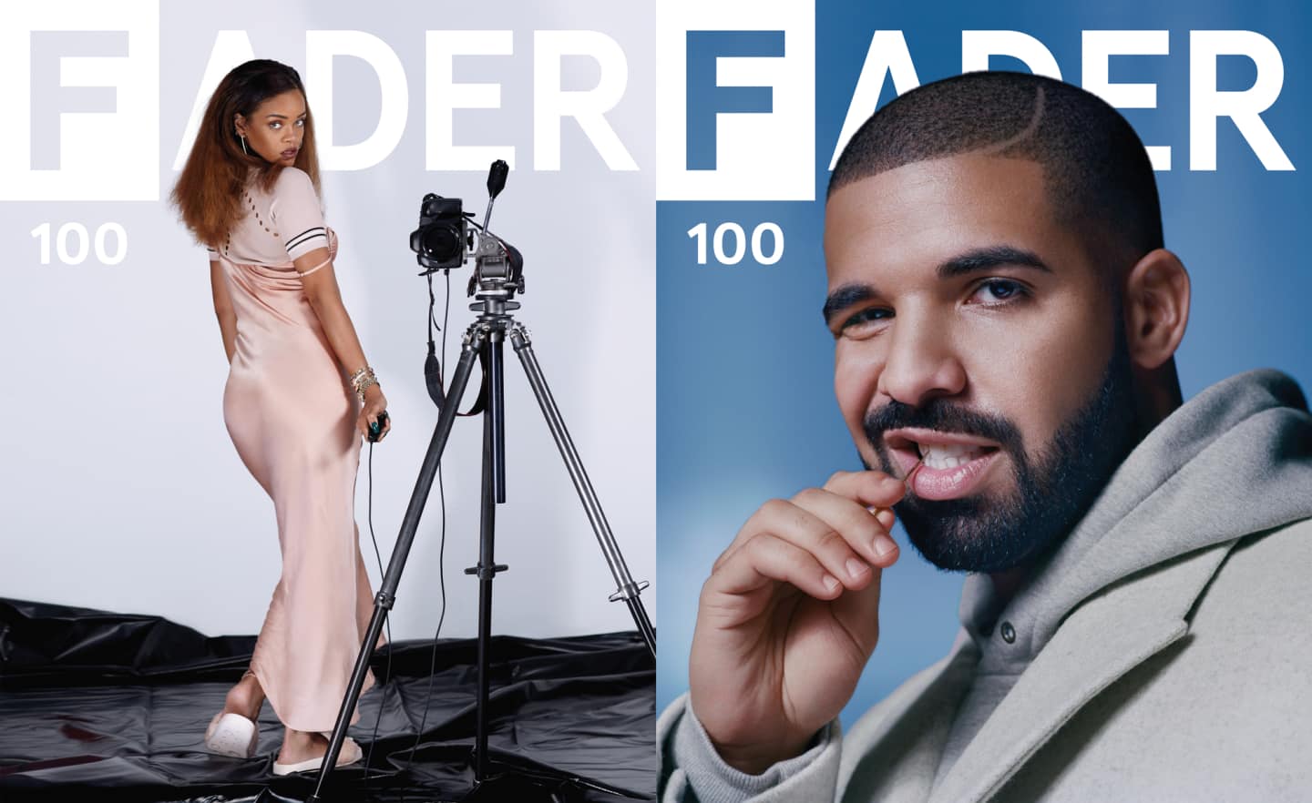 For FADER 100, self portraits by Rihanna are paired with essay about anticipation for her upcoming album R8, and how celebrities interact with media today.