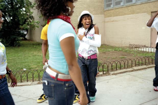 After a quick, Red Bull-fueled rehearsal session in the PTA room with her gum-smacking, neon Reebok-ed backup dancers, school security guards escort Lil Mama to the field, clad in a white “Smooth Criminal” fedora with a rhinestone hatband. Students, parents, cousins and assorted well-wishers start cheering hysterically, whipping out camera phones and running down the field (“Look at Tisha’s mother! She has her shoes off!”) while Mama and Co move through a quick, choreographed rendition of her single “Lip Gloss.” Once the song is done, the graduating class spontaneously begins to sing and clap the beat to Lil Mama’s hood hit “No Music” as she walks up to the stage. She silences them with a “Chill, y’all!” then remarks, “I didn’t prepare a speech…but for real, congratulations. Set goals. When you go into ninth and tenth grade there’s a lot of peer pressure.” She then walks back to the school, stopping briefly to pose for photos with cafeteria workers and former teachers, and a gaggle of younger students watching from an adjacent playground start shrieking over, “Lil Mama I love you for real! My lip gloss is poppin too!”