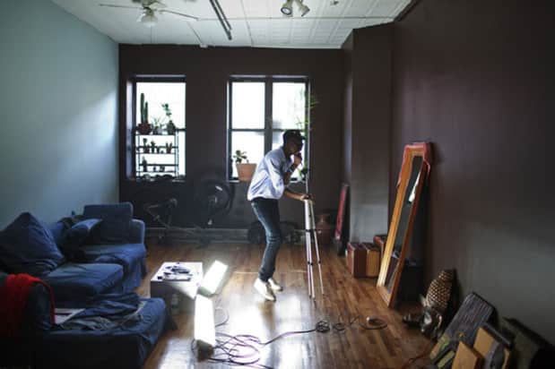 London spent a stint playing prep school basketball in Pennsylvania at the behest of his Trinidadian father, Moses, who wanted to keep him out of trouble. But he couldn’t stay out of Brooklyn and recently returned, quickly posting up in the center of a new diverse pop movement bubbling in his home borough. He is working with Michael Angelakos of Boston indie band Passion Pit, whose new album was recorded in town. He’s done shows with BK crazy rappers Ninjasonik, works frequently with producer Machinedrum, an electronic music fixture from Williamsburg, and presently attempting to ride a skateboard in the corner of the loft is one of London’s friends, local soul singer Jesse Boykins III. This is London’s new Brooklyn, a playground of potential collaborators whose only boundary to entry is his taste in music.
