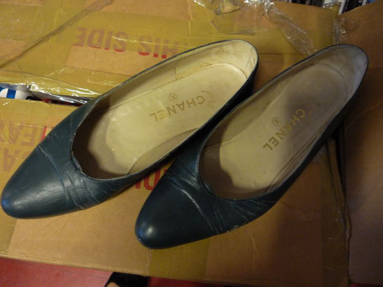 The first thing Clare and I found was a really worn in pair of Chanel flats that you knew someone had just loved for days. The next thing we found was a crazy, but totally amazing paisley bathing suit that I'll for sure wear under some cut off denim shorts. Then Clare found this totally wacky, yet totally proper leopard print Kelly Bundy-esque dress with an amazing open back and oversized gold zipper. From a distance I spotted a worn in acid wash jean jacket, complete with five outta control amazing buttons! My two favorite were “I like boys” and “Don’t bug me” with a crazy dog on it. Naturally I bought the jacket strictly to own the pins. Clare found a really rad camel colored, oversized sweater for Reggie—but a price tag of $20 was a little over the top for us so we put it back. Lastly, there was a really beautiful, vintage, floral, cropped jacket that looked awesome over Clare’s black baby doll dress.