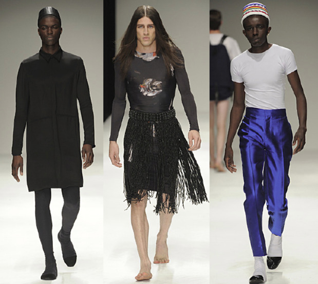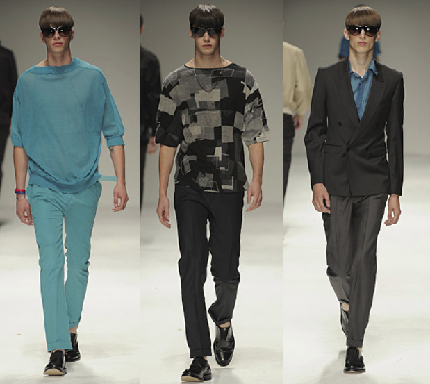 The MAN show at London Fashion Week is always a chance for the boys to get flashy, and obviously the first place to go shopping for new British menswear talent. A newcomer to the MAN fold, designer Katie Eary literally turned the human body inside out for her spring 2010 collection, taking the idea of underwear as outerwear right down to the bone with skeletal leggings, ribcage splashed tees and pigskin-covered shades with trompe l'oeil eyeballs. Hardly surprising then that William S Burrough's Naked Lunch and Junky were the designer's go-to texts for the wonderful weirdness of it all.