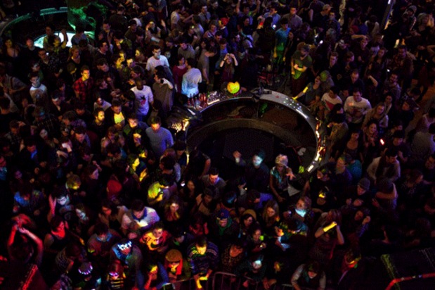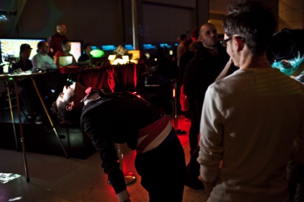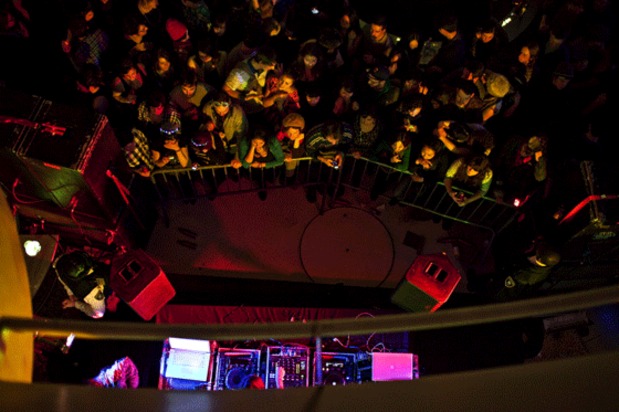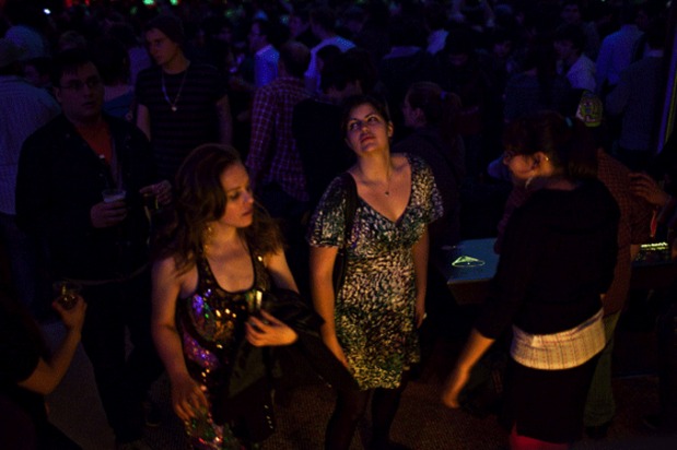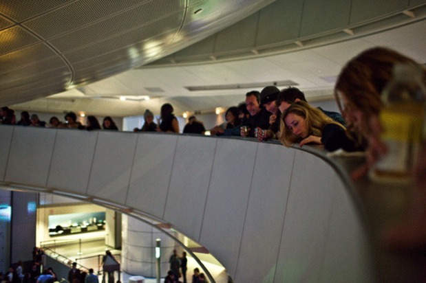 We keep hearing rumors that Michael Stipe was hanging out at The American Museum of Natural History for last Friday's edition of One Step Beyond featuring Fischerspooner and Animal Collective, but we couldn't see him. Instead we saw a grip of kids—actually way more than a grip, a super grip—raging to every single song Fischerspooner dropped. Mainly they seemed to focus on textures, offering sublime moments of blissed out dancing as well as equally contemplative bits of waiting in line for a drink/walking down that long spiral path to the planetarium floor like you're in the castle in Neverending Story 2. Then Geologist hopped behind the decks and proceeded to get the front 15 or so rows of people jumping like crazy. We're pretty sure he could have played an all drone set and people would've still been wilding. But instead he catered to the audience, playing jam after jam until security forced everyone out at 1AM. Check out some more of Bryan Derballa's excellent photos after the jump.