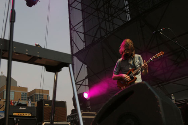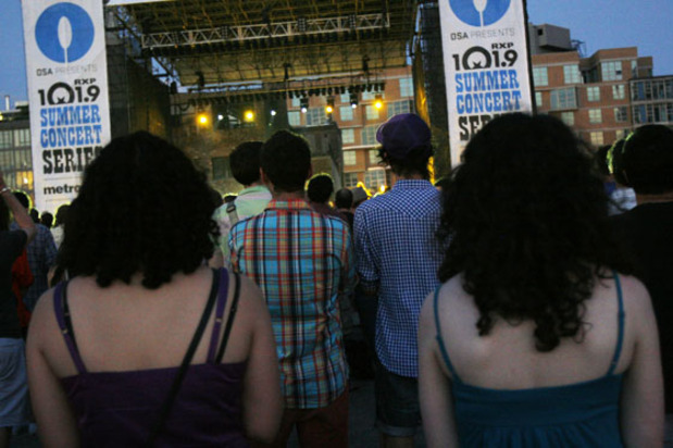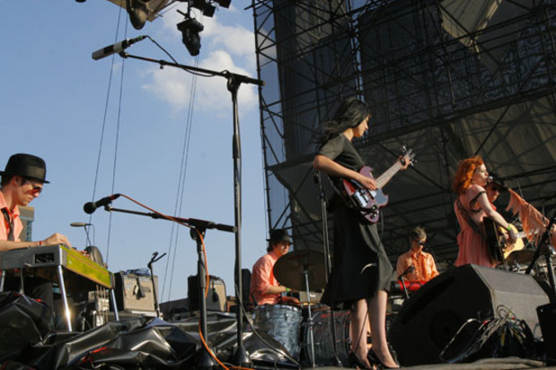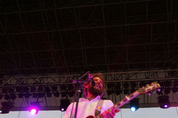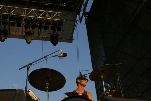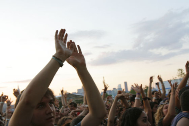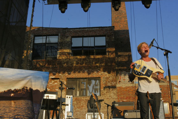 We celebrated the summer solstice a day early with the rest of Williamsburg at the East River State Park this past Sunday, as Karen Elson, Grizzly Bear and Band of Horses played the first sold out show at the waterfront. Grizzly Bear’s Ed Droste saluted the summer season by wearing Hawaiian floral swim trunks, and even the keyboard was dressed for the occasion, draped in a sheet printed with a tropical beach at sunset. Photos of Sunday's show are after the jump.