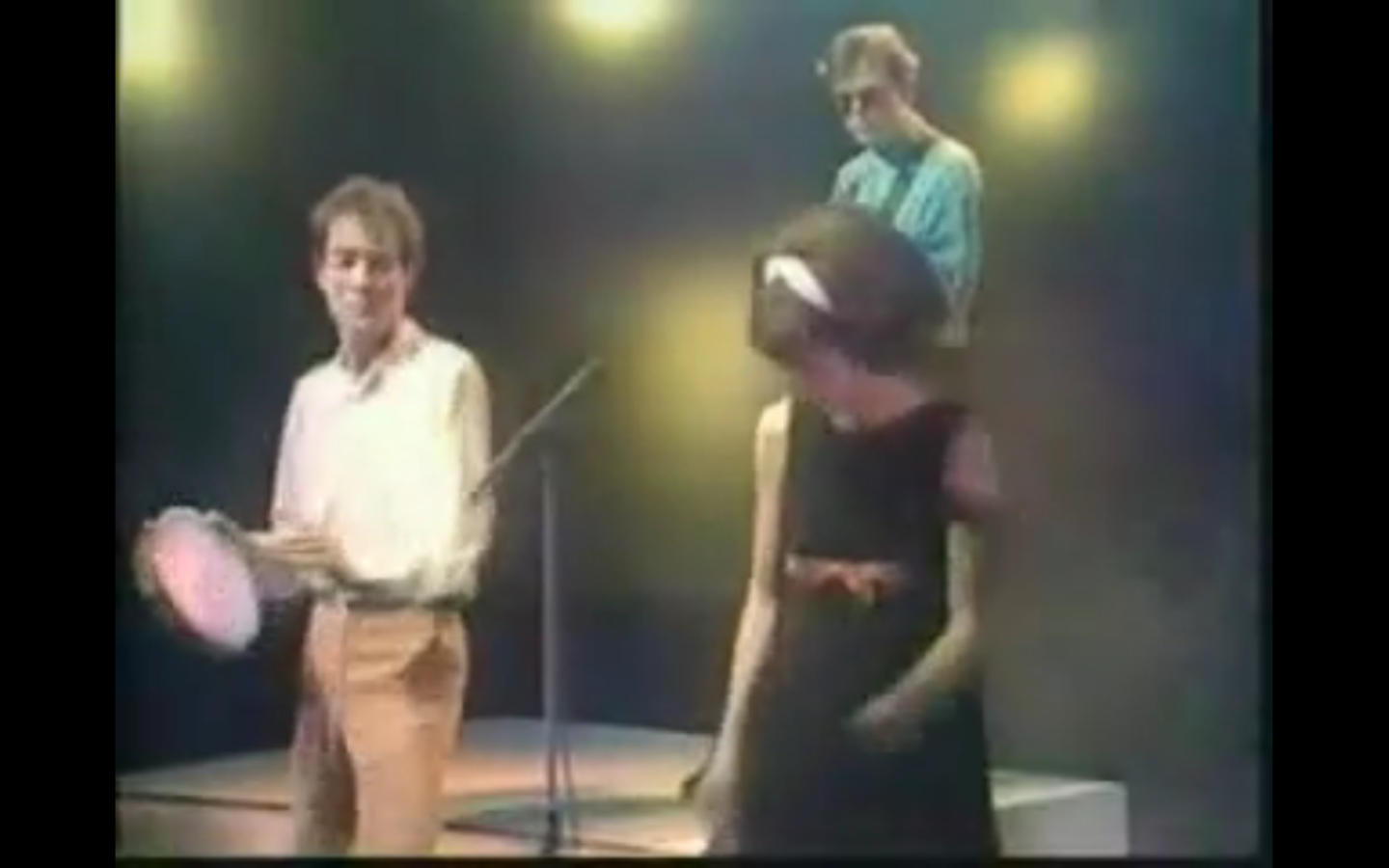 No bashing on "Love Shack" or anything, but today's a day for the sparer, simpler aesthetic of "Give Me Back My Man", a song that, itself, has a pretty nice summer vibe. Cindy Wilson looks awesome, a Mary Tyler Moore for the New Wave generation. Her little flip (a wig?) and stretchy white headband are the coolest things in the world, babydollish and bratty. Her cute black dress is Wilson's ode to the '60s, perhaps, but it looks fresh on her. Tride and true thrift store kids can make anything look brand new. And while the dudes might not look too exceptional at first glance, we are liking their perfect '80s casual, oxford shirts tucked into proper slacks. It's all about the personality - the dudes wear a conservative look but somehow it seems edgy, not Wall Street. David Byrne had the same swag.