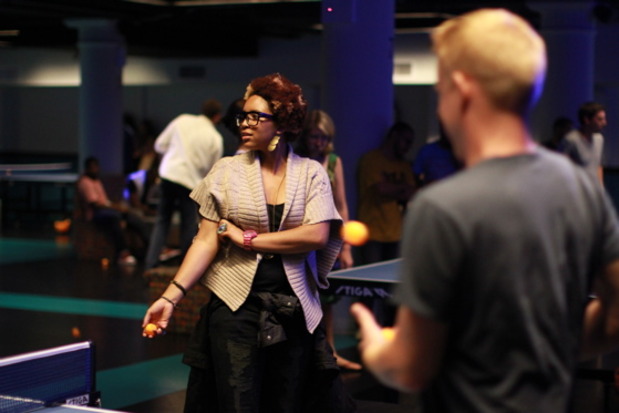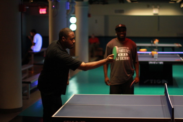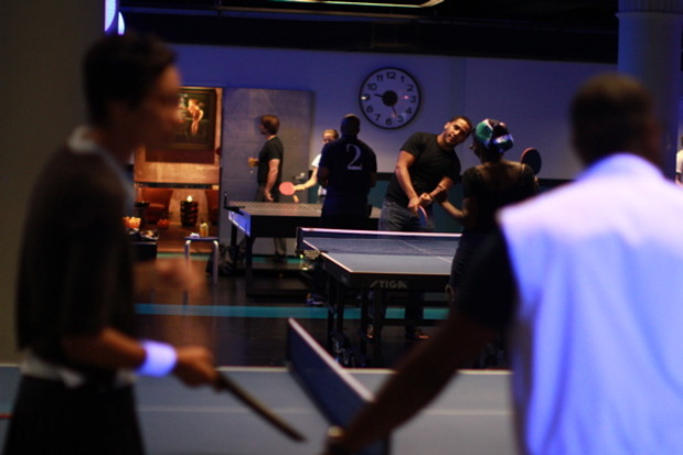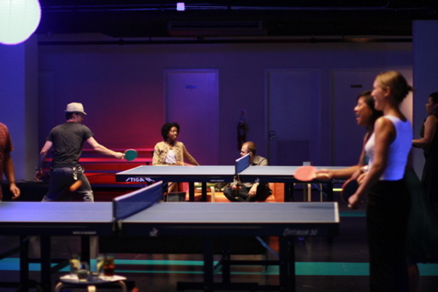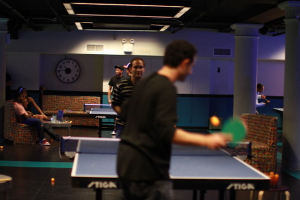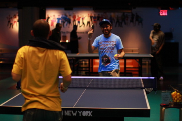 Last night was the first installment in our Table Dance (TM) series, a lighthearted party with free ping-pong and dope DJs at NYC's premier table tennis club, SPiN. We took over the basement bar, with a view direct into the subway, and filled tens of tables with the city's most ferocious ping-pong champs, who paddled to the death (or at least until midnight). Legendary Boot Camp DJ Evil Dee provided the soundtrack, playing only the best, most eternally soulful beats in history. Our arms may hurt a little today from our nasty backhand hits, but it was worth it. Check some more pics after the jump.