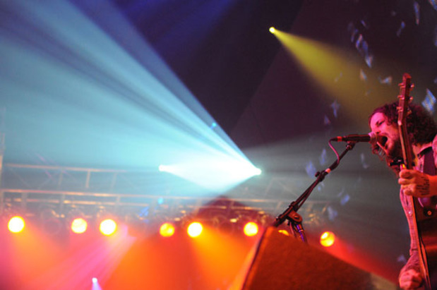 What followed Atlas Sound was a harsh shock to our system, because we found ourselves watching local gothic-folksters See Me River in the EMP Skychurch, which is basically a dark room with fractured video projections. Perfect for a DJ set from Moby, not so perfect for a band that is down to pull out an accordion when necessary. But they prevailed and made it work, playing FADER-favorite "Don't Pray for Blood" early in the set and then moving on to newer material as well as a sped up copy of The Pixies' "Where is my Mind," which we've all heard close to a million times (thanks Fight Club!) but still sounds great.