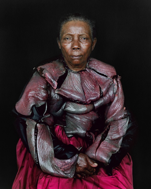 The main beef with Gaga is not the discourtesy of her attire, though, but the source of her inspiration. The meatgown, designed by frequent collaborator Franc Fernandez and styled by her man Nicola Formichetti, appears to have its precedent in New York artist Pinar Yolacan's Maria series from a few years ago. A big leap, one might say, but Maria has shown all over the world and had a nice run at downtown New York gallery-of-note, Rivington Arms, in 2007, and this crew has shown a willingness to borrow liberally. So we're just saying that if you were really into this particular Gaga costume, there's more where it came from. Check a few of Yolacan's images after the jump and many more at Rivington Arms.