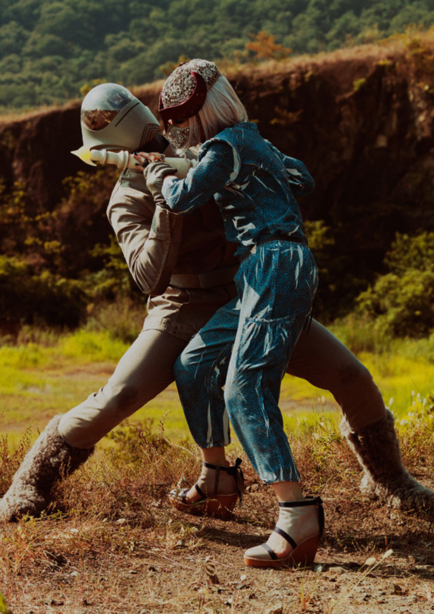 One of our earliest pivotal style moments was the first day we wore a Jedi cape and light saber we got at our favorite little comic and card store called Starbase One. Say what you will, but it was a look, even if it wasn't entirely popular with our school chums. So it's with a warm, nostalgic heart that we adore UNDERCOVER's latest lookbook. Entitled UNDERMAN, it's a full photographic narrative based on a sci-fi story invented by designer Jun Takahashi. The story's a bit hard to follow—something about the hero rescuing lost souls from evil forces—but the sentiment's all that matters. Getting older has made us skeptical of hero rescue and the power of good to overcome evil, but UNDERCOVER's lookbook has succeeded in saving at least one soul this morning: ours. More looks after the jump. (via Hype Beast)