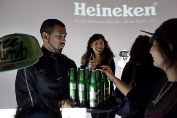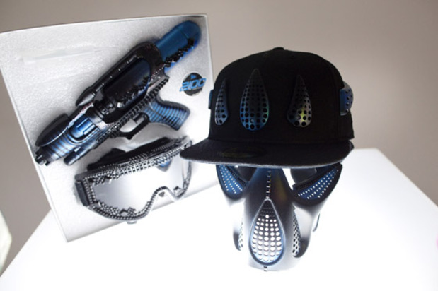 In the end, it wasn't the valet (or even the Crazy Girls strippers) that made our New Era 90th Anniversary party special. Sure the Mad Decent sounds of Paul Devro, and the Absolut Crush's and Heineken's served in icy-cold bottle cans from the future made for awesome times, but what we loved the most was the artistry of the 90 custom designed New Era lids, including our faves - the Halloween inspired design by Queens native and world champion baller Ron Artest, and the laser tag mask complete with matching laser tag gun.