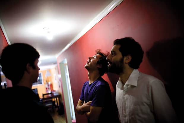 Bavafa has the mind of an electrical engineer and a degree to prove it, but the full-length album he’s made with drummer Jonathan Bafus and bassist Eric Rudd is far from cold academics. Bavafa was influenced by open chords, percussive guitar playing, Pink Floyd and the Persian music he grew up with in his Iranian-American household. (On a 2007 7-inch, Sholi covered Iranian pop star Googoosh’s “Hejrat, ” which Bavafa sang in Farsi.) Deerhoof’s Greg Saunier produced the Bay Area-based band’s self-titled debut after Bavafa sent him a letter asking him to, and while there were already plenty of on-the-spot changes in Sholi’s whirlygig song structures, Saunier’s milkcrate drum aesthetic helped stretch it out like silly putty. “A lot of Persian music is centered around one chord and based in one key. A lot of our songs, at least the ideas, are the same way, but with more dynamics and different elements,” says Bavafa. “I always like to think of a song as just a space for a narrative. In the same way that a film will use editing or lighting or voiceover, all these elements come together to create that picture.”