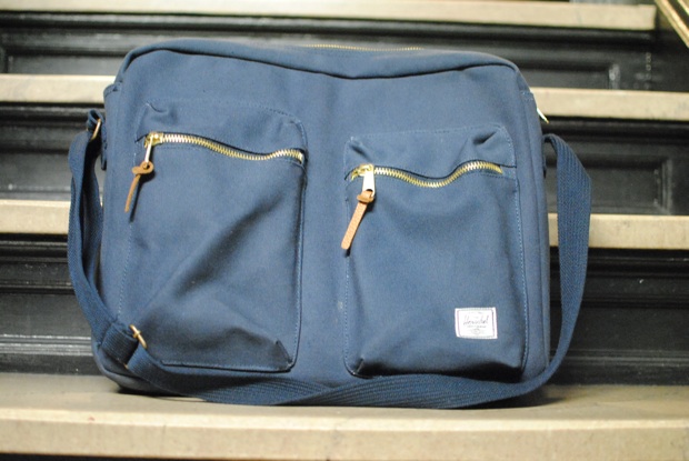 Features: The Herschel bag is the more complex of the two. It's got two outer pockets that zip, allowing for storage of smaller items, as well as a laptop pocket inside. The inner lining of the bag is a cotton pinstripe, and there's a woven shoulder strap that creates a book bag silhouette.