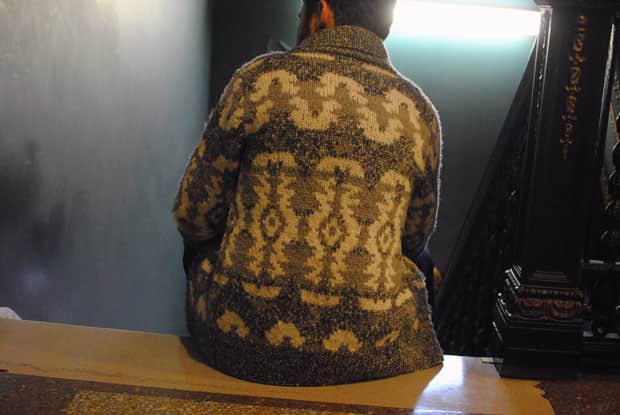 The shawl neck cardigan is a dicey move. It's hard to pull off without looking like I should be 60-years-old, spending my days smoking a pipe and teaching a super liberal poetry class in Vermont. But this one, beautifully made by C.P. company, manages to fit my style without pointing too heavily toward my potential future (the more I think about it, the more chilling in Vermont and smoking a pipe seems great). It looks and feels hand woven, and while it's heavily patterned, it's not obtrusive and can be worn with just about anything. It's also super warm, and since it's already December and I still haven't really had to break out the gnarly winter coat, it acts as a good middle season proxy.