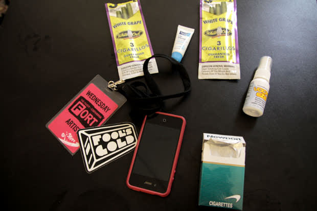 Once you're inside the FADER FORT Presented by Converse, there's really no reason to leave. We have sun, lots of jams and complimentary blue slushies. But leaving the outside world behind for a full day means what you bring with you is super important—there's only room for the essentials and they better serve you well in the Texas heat. We asked some of our favorite FORT-goers to empty the contents of their purses, man-purses and pockets. Danny Brown showed us what he packed.