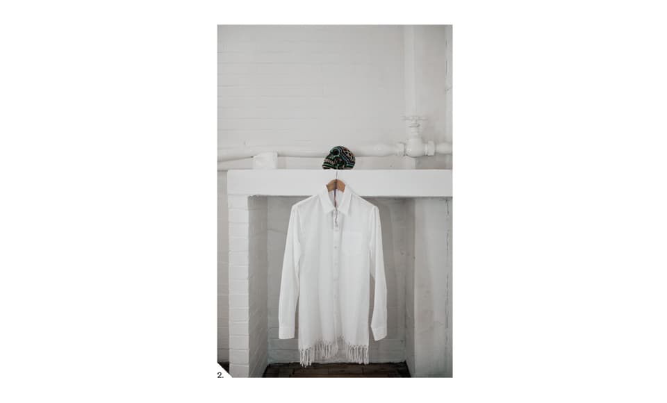 2. Our Exquisite Corpse Beaded Skull, Ann Demeulemeester Joan Fringe Shirt.