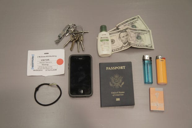 Ab-Soul, the suburban-born, self-proclaimed underdog of Los Angeles' Black Hippy collective, tops his long mop of curls with a hat most days and his eyes with big, sun-blocking glasses every day, since a childhood bout with Steven-Johnson syndrome made them sensitive to light. He's in New York for a visit this week, and emptied out his pockets to show us his everyman essentials: hair tie, travel moisturizer, two $5 bills and three lighters. Soul's ambitious, intimate new album, Control System, is out now.