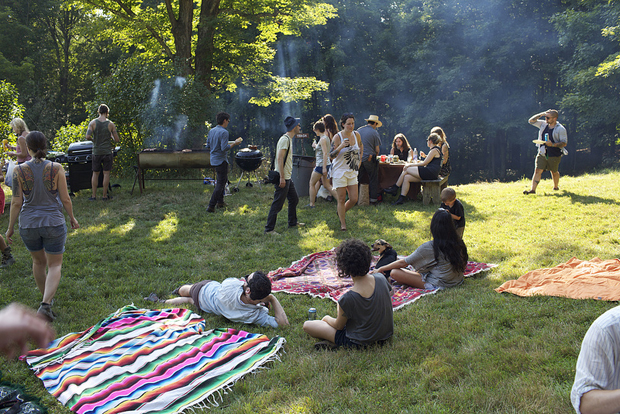 People came from all over—as far as Oregon—to flop out on the lawn with plates full of potluck salads and grill-food in a field full of pretty girls with dresses on and naked babies attached. Sounds all hippie dippy, yeah, and I guess it kind of was. But it was way mellower than you're imagining. Despite the small-time circulation of a new drug that was advertised as "a mix of acid, mushrooms, weed, MDMA, DMT, pills and pot," and the port-o-potty lines, all the usual try-hard trappings of a music fest were nowhere to be found. It was an easy time, even back in our tents after the music. A sweet time and a family time, with no distinguishing start or finish.