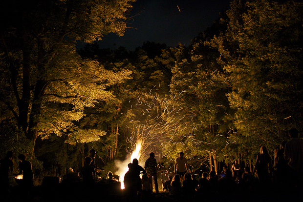 The Wild Unknown’s Forest Party happened Saturday night in the woods by Delhi in upstate New York, at the house that Family Band founders Kim Krans and Jonny Ollsin built by hand. That is not a metaphor. It was the second year running and the lineup of performers included Toronto-based revelation Jennifer Castle, warbly Department Of Eagles dude Fred Nicolaus, our hosts, Family Band (Krans and Ollsin plus Scott Hirsch and a drummer Ryan Berg) and Jerk With A Bomb / Black Mountain / Pink Mountaintops inventor, Stephen McBean. Oh! And a teenage opener, Lula Hyers, who sang "Wild Horses" so sultry and dreamy in the improvised rock-wall amphitheater that we all just about drooled.