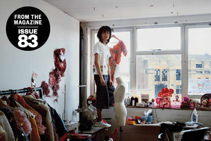 Despite debuting a full womenswear collection at London Fashion Week this year and being on the brink of a big, grownup career at 23, Ryan Lo still feels, dresses and designs like a kid. Shelves in his studio are lined with Hello Kitty trinkets, Pocky boxes and nameless plastic dolls; he loves pop culture references and uses the word “tacky” to describe everything he admires. Born and raised in Hong Kong, Lo moved to London seven years ago and credits the city’s gray gloom for spawning his candy-coated fantasy world full of elaborate ruffles, frothy knits, tinsel and lots and lots of mesh. Of course, pink and purple pom-pom knitwear is not always the easiest look to pull off, so Lo gave us some personal tips for dressing imaginatively during the winter doldrums.