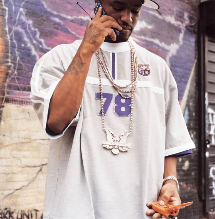 It's easy for the casual observer to get caught up in Cam'ron's image. After working as an underground rapper in Children Of The Corn—a Harlem crew also featuring a pre-Bad Boy Mase—and releasing solo gold albums in 1998 and 2000, he propelled himself from street MC status to urban pop personality in 2002 by stepping out as the Pink Panther—the cat rocking Air Force Ones, a pink Yankees fitted cap and pink chinchilla fur, pushing a "Laffy Taffy" pink Range Rover. The way pink hit the clothing market at the same time was insane, and you had to wonder if Cam was behind it somehow, some way: hardknocks from ten year-olds to thirtysomethings rocked pink XXXXL T-shirts while suburban-bred city scenesters stepped out in extra medium ones, and it seemed that everyone was trying to buy pink Jordans—the girls' ones—to match a pink striped button down shirt, or, alternately, pink Chuck Taylors to match a pink Lacoste three-button polo. In New York the trend got so bad it brought Cam to the point of nausea. "When I was wearing pink, I wasn't doing it for everyone to start rockin it. I was doing it because I wanted nobody to be wearing what I was wearing," he says. "I don't rock pink anymore. It disgusts me."